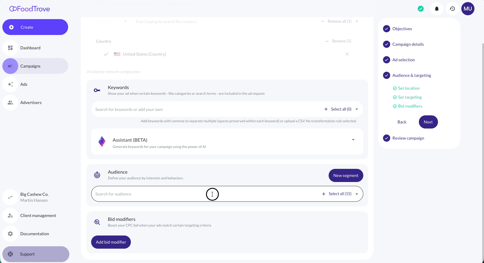 The selected audience segments will now be available for targeting only on that specific advertiser.