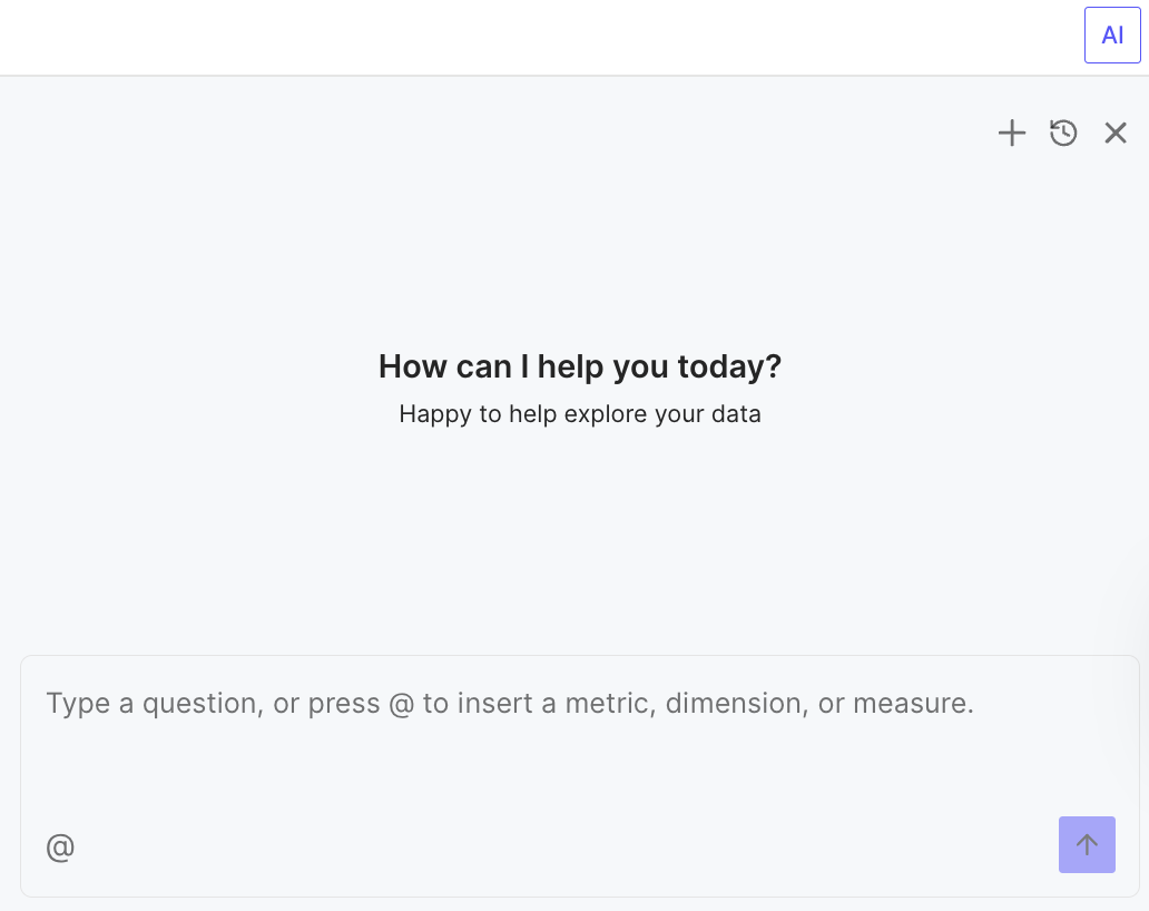 - AI assistant. An AI chat panel is embedded directly in the dashboard and the explorer tabs. Ask questions about your data in plain language and get instant, context-aware answers — without switching tools or pulling a report manually.