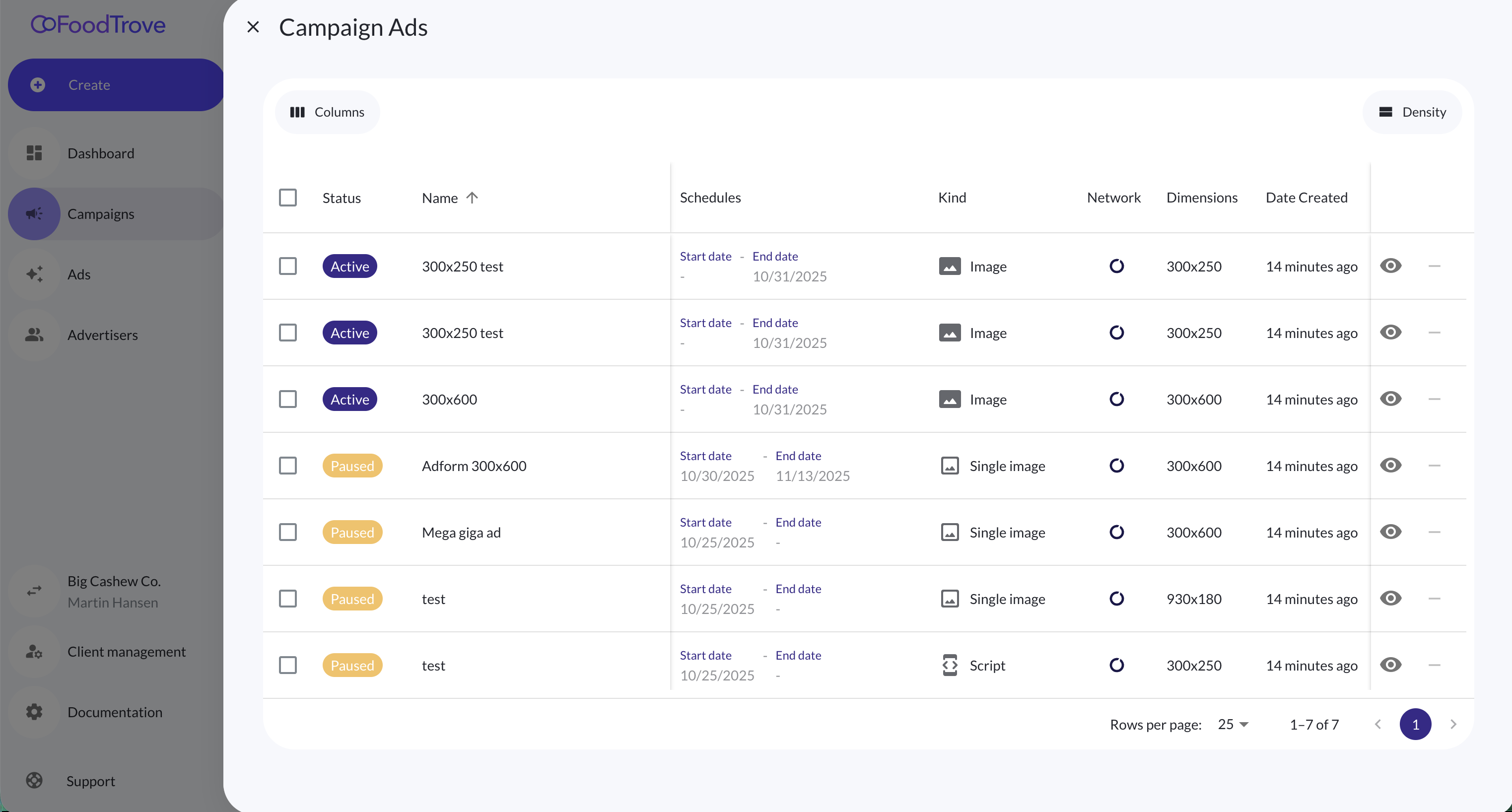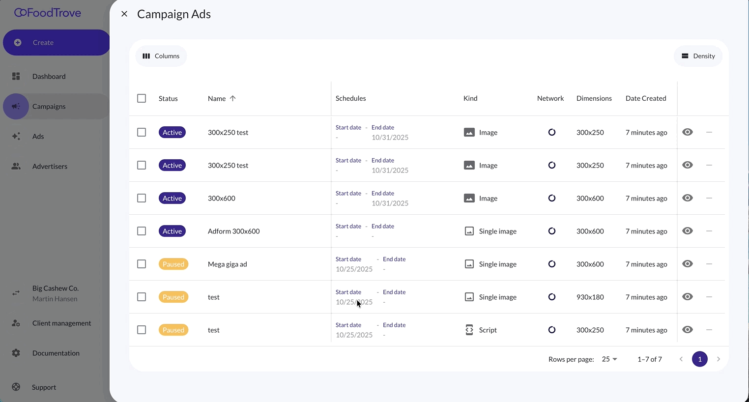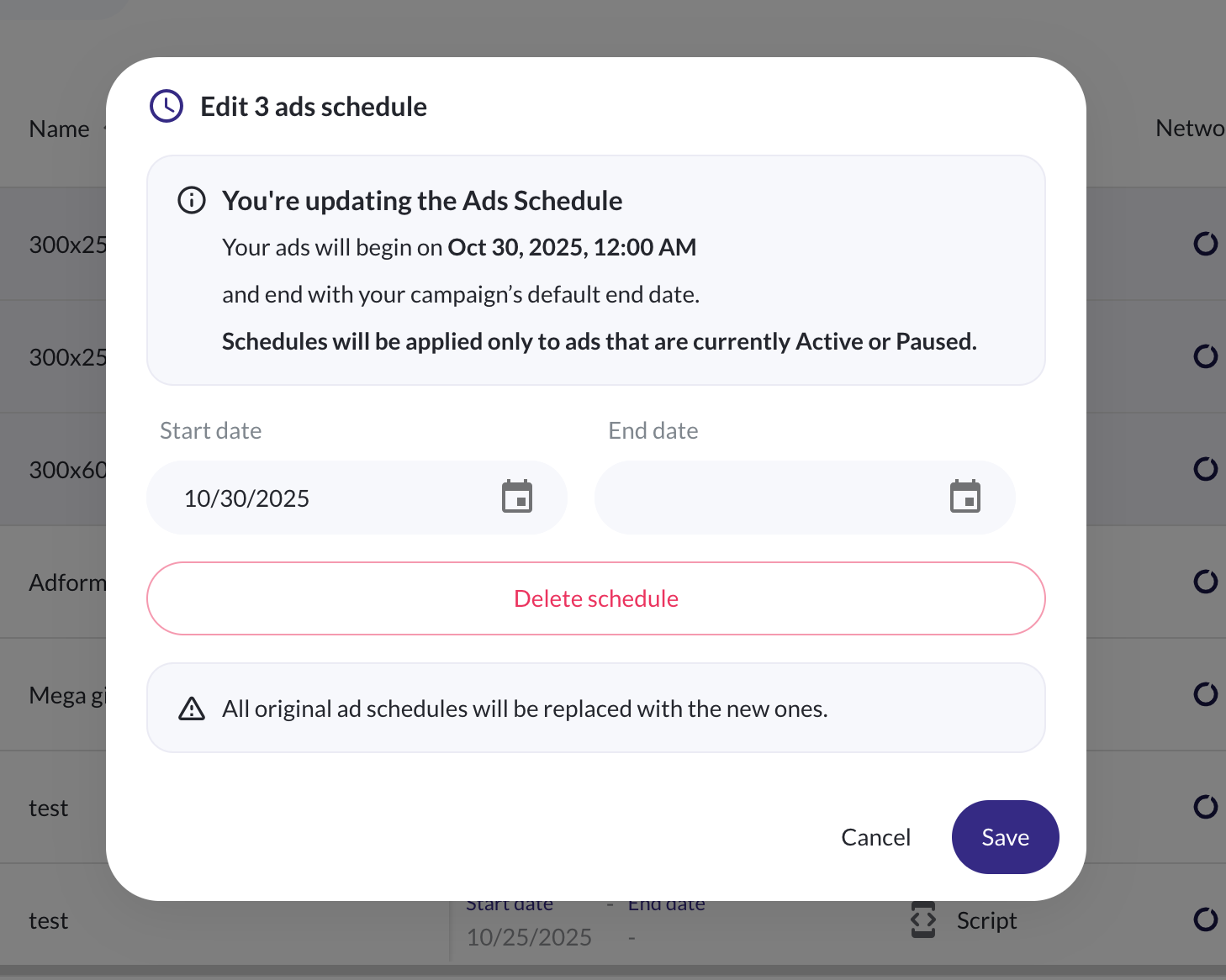 From the campaign’s ad list, you can also edit individual ad schedules directly - perfect for quick adjustments without reapplying a bulk change.