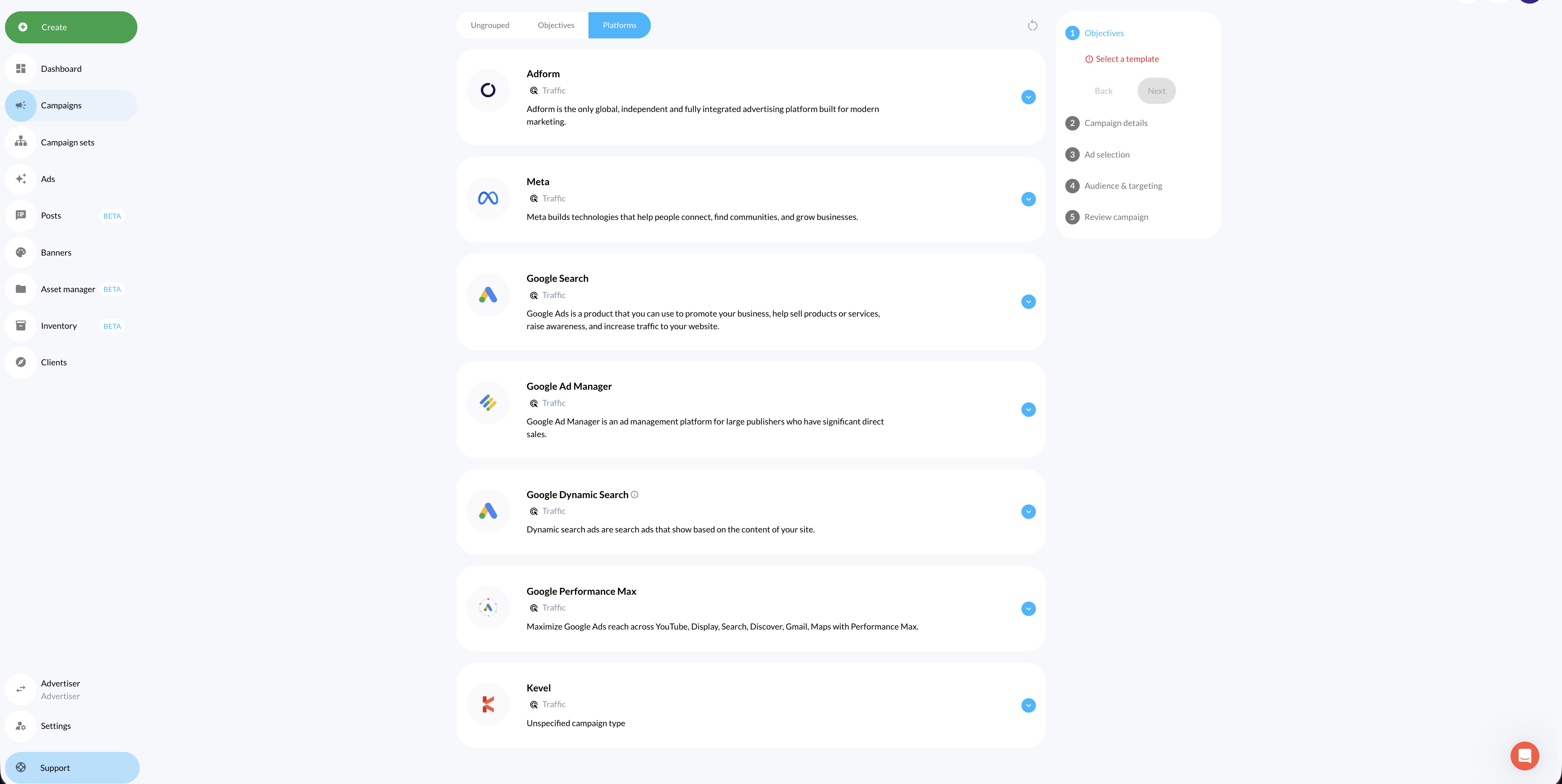 Your Console instance can be configured to surface all, some, or none of these campaign types, with the option to restrict or grant access at the Business manager or advertiser level.