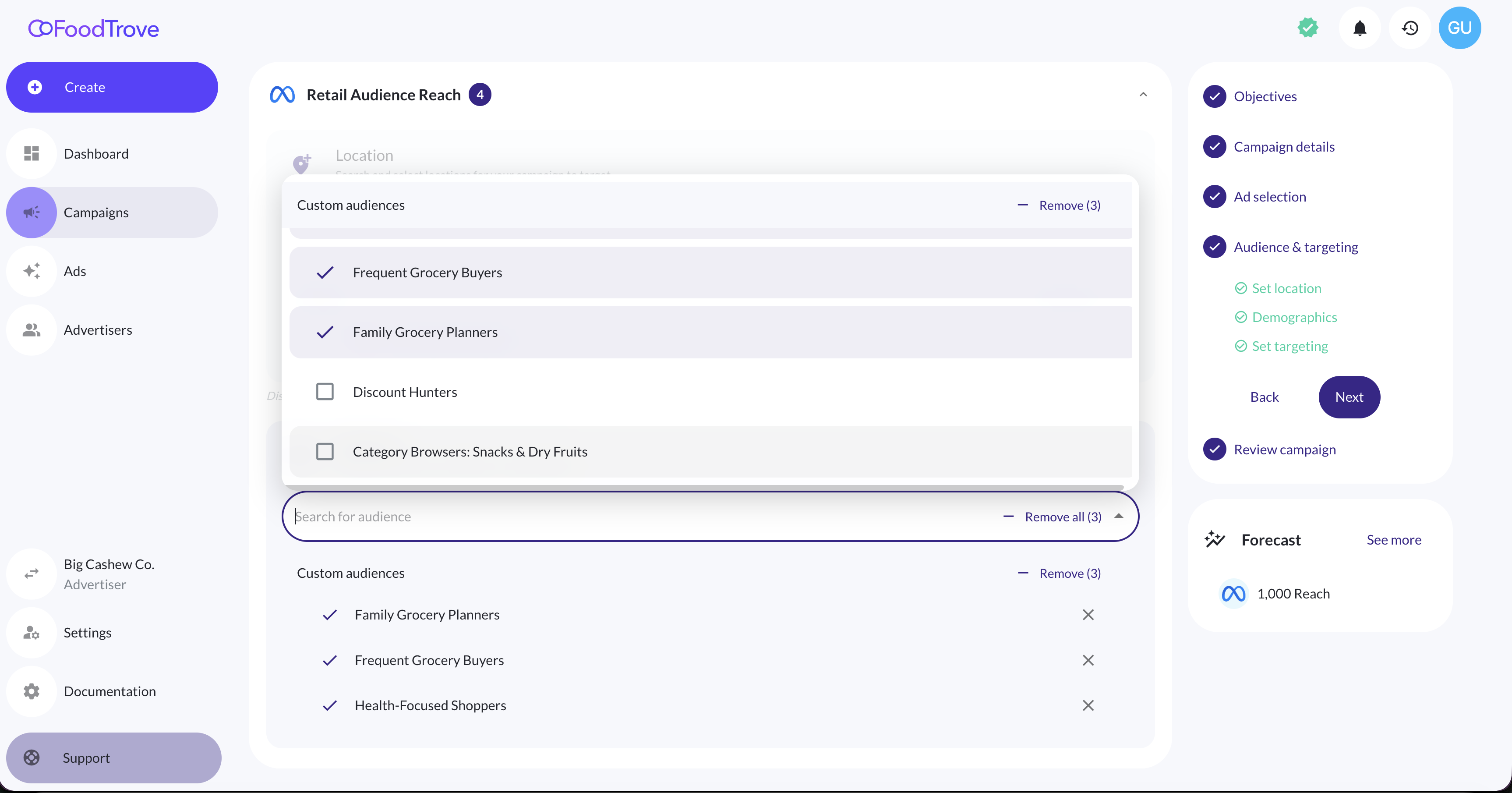 Any additional Meta targeting can be applied as a background setting within an Ad Product, keeping the campaign creator experience as simple or as detailed as you need it to be.
