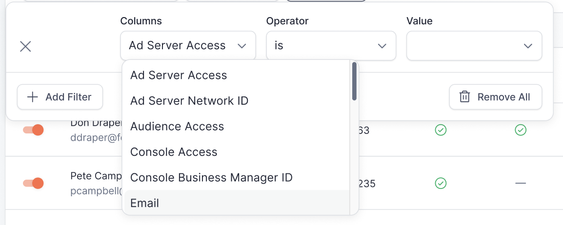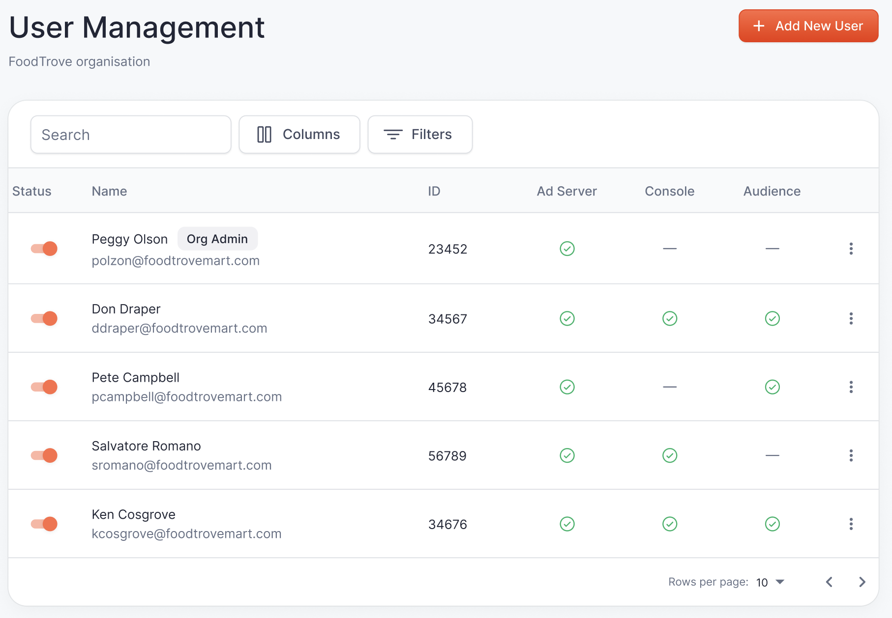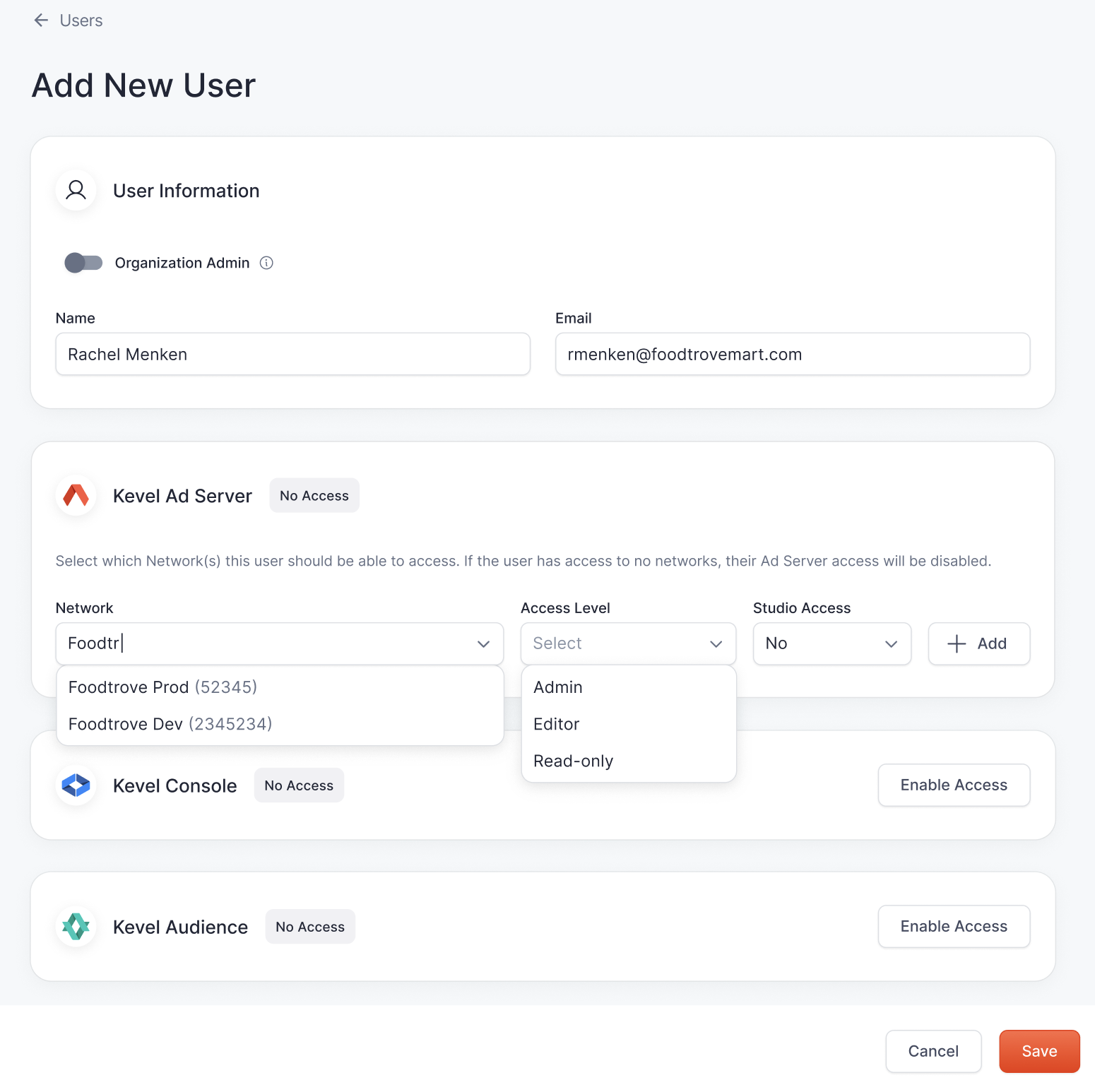 User management for all Kevel platform products will be accessed within the Ad Server UI.
