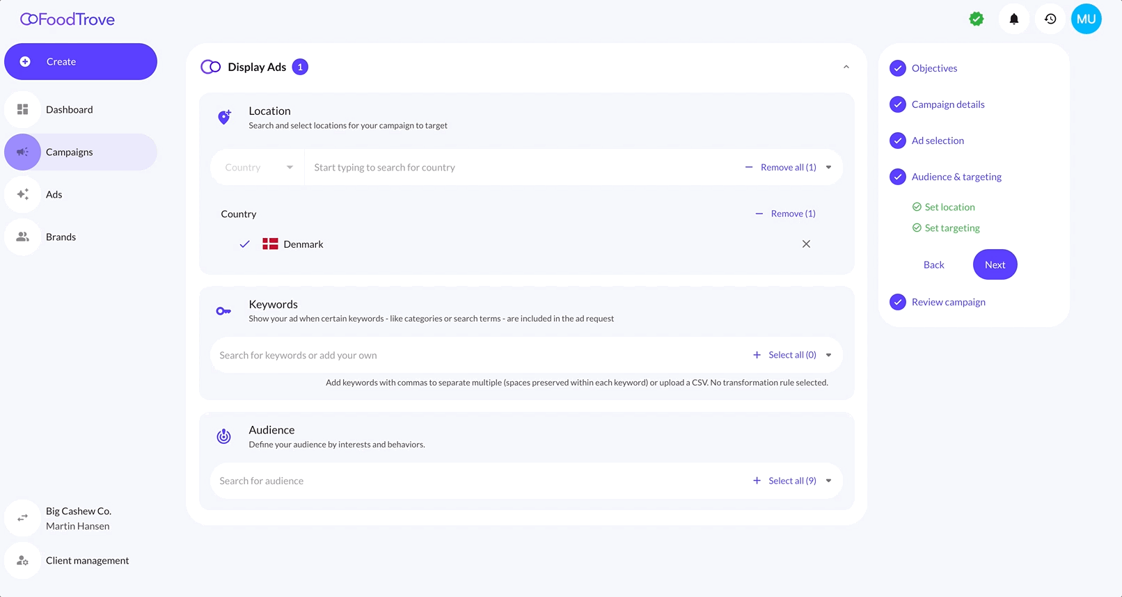 - Combine audience targeting with other campaign criteria in one unified flow.